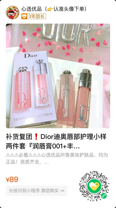 迪奥变色润唇膏之前开团好评超级多了现在新上了组合装!润唇膏001+丰唇蜜001小样,试错成本低!一套只要89元姐妹们不能错过啊 保存下图,微信扫码打开即可购买