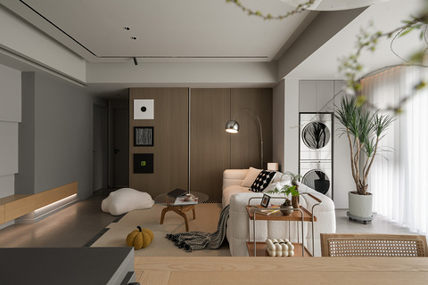 谁能拒绝一个云朵般柔软的客厅呢?米白色弧形沙发像被揉碎的云团,随手丢几个同色系抱枕,再配上一颗蓬松的黑色抱枕,层次感这不就拿捏了~