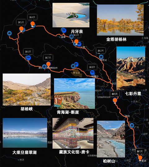 花费9天从重庆自驾开了4900公里,去大西北看大自然的彩色D1 9 月 30 日(出发地 → 武威)建议 15:00 前出发,夜宿武威市区,方便次日 8:00 准时游玩。住宿:武威。 D2 10 月 1 日 武威 → 张掖(318 km,4 h)07:30 酒店早餐 08:00 【鸠摩罗什寺】(0.5 h)西域高僧舌舍利塔,快速打卡 09:00 上连霍高速 → 张掖 12:30 张掖市区午餐:川西