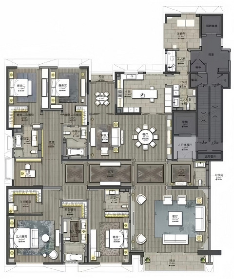 建面110,四房三卫。每个房间尺度并不小请问还有谁?