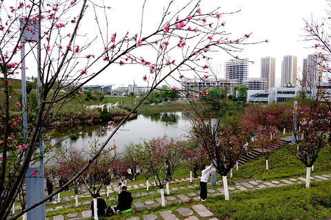 今天去金凤凤鸣湖公园,没想到看见大片桃花正红!