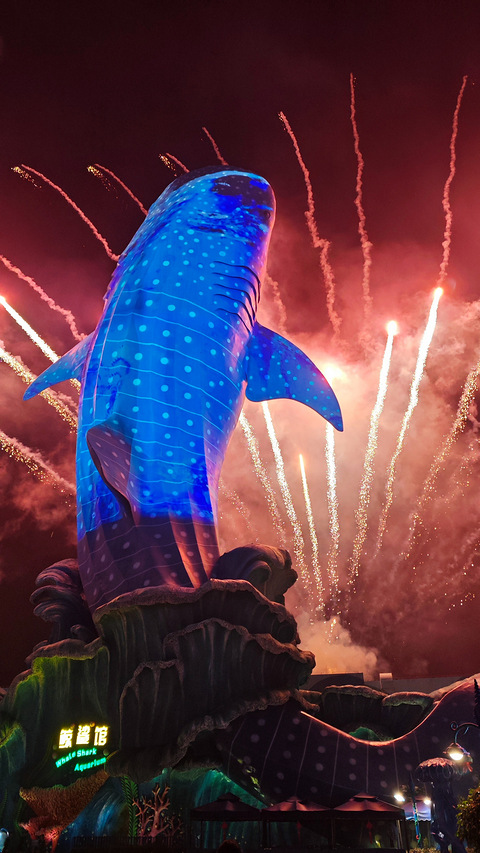春节又带娃去了广州和珠海长隆。唯一不同的,是珠海长隆这次是选择的‘夜宿鲸鲨馆’。珠海长隆是海洋动物,地标建筑就是那个巨大的鲸鲨雕塑,晚上的烟花秀是以此为中心,下面就是核心展馆,鲸鲨馆。 就那个巨大的水族箱,里面有20多米长的鲸鲨。这地儿算是出片儿圣地,很好看,白天人特多,没想到晚上这地儿会用来睡觉。白天是这样的,人山人海,想出片要门碰运气等机会,要么靠后期‘人物消除’。 晚上嘛,就随便拍了。 插一