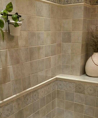 两个颜色,一个颜色一个卫生间。其中一个卫生间搭一条腰线,另一
